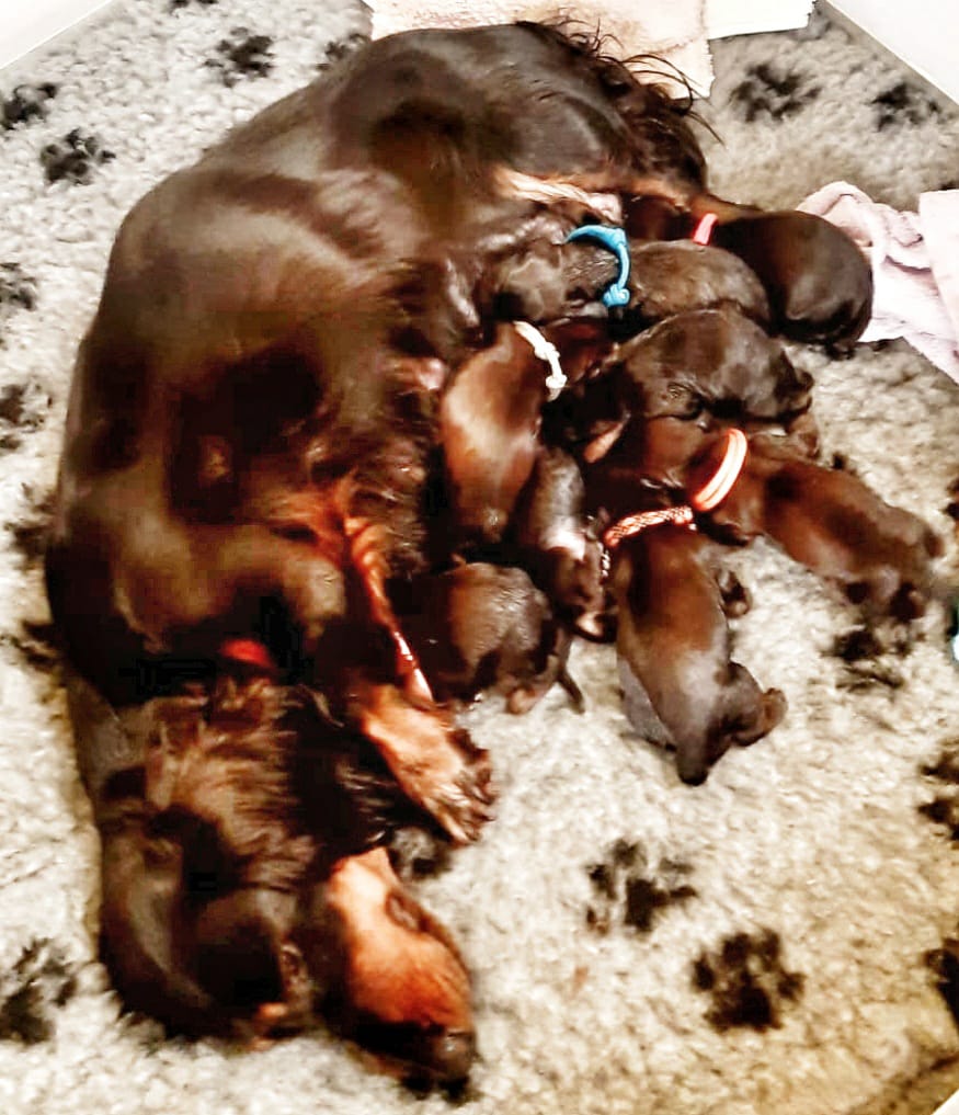 (Kora hat am 3. Dezember (am 59. Tag der Trächtigkeit) ohne Probleme 8 roten Welpen das Leben geschenkt, 2 Rüden und 6 Hündinnen. Sie hat es ganz toll gemacht! Mutter und Welpen geht es super! In Kürze mehr Fotos!